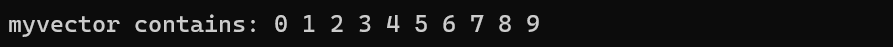// vector::operator[]#include <iostream>#include <vector>using namespace std;int main(){ vector<int> myvector(10); // 10 zero-initialized elements vector<int>::size_type sz = myvector.size(); // assign some values: for (unsigned i = 0; i < sz; i++) myvector.at(i) = i; cout << "myvector contains:"; for (unsigned i = 0; i < sz; i++) cout << ' ' << myvector.at(i); cout << '\n'; return 0;}