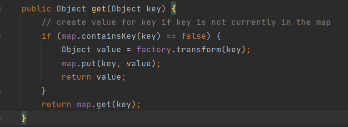 现在我们知道,既然hint提示需要调用JSONObject的put,而该类并没有readObject方法,故而需要找到一个能够调用任意类的put方法的链子作为gadget的一部分,而JSONObject正好也属于Map的实现类,从常用的反序列化类中,符合条件的就是LazyMap.get()
