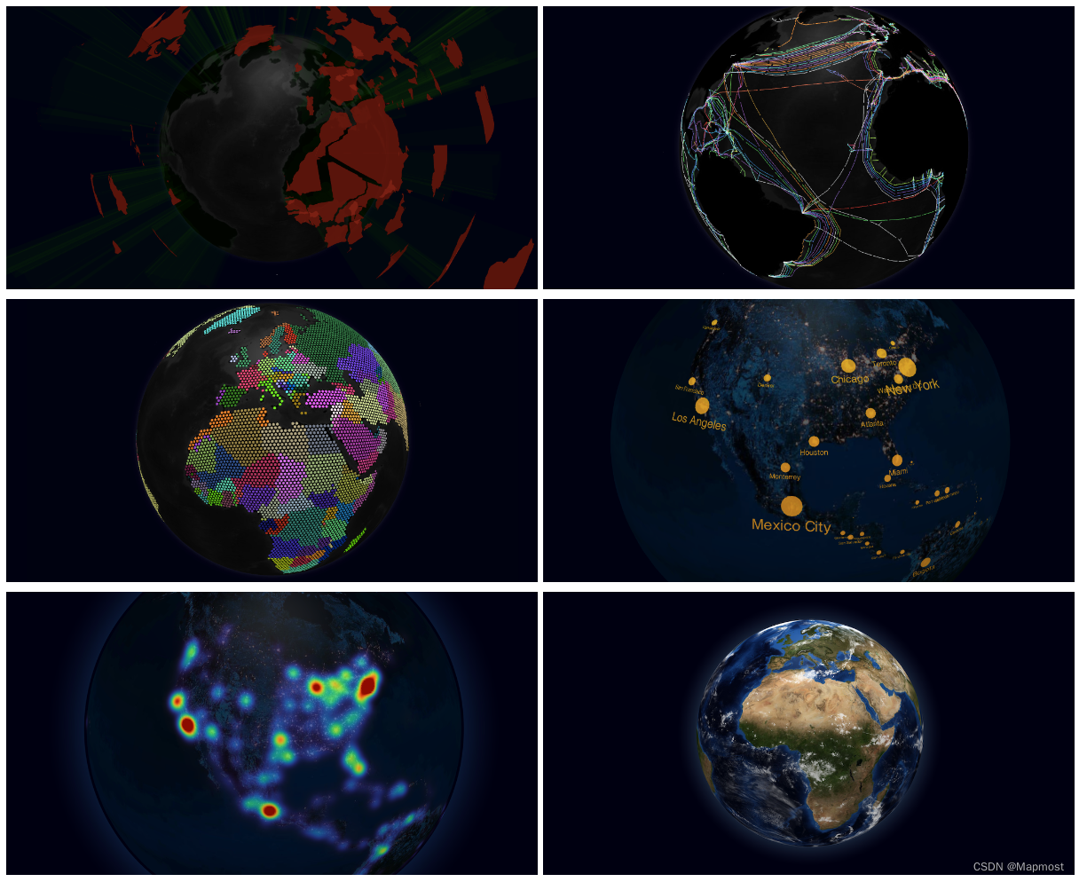 Globe.glGlobe.gl 是一个 JavaScript 库,允许开发人员在浏览器中创建交互式和可自定义的 3D 地球仪和地图。它建立在 WebGL 之上,提供了一系列用于可视化地理空间数据的功能,包括标记、弧线、路径和热图。