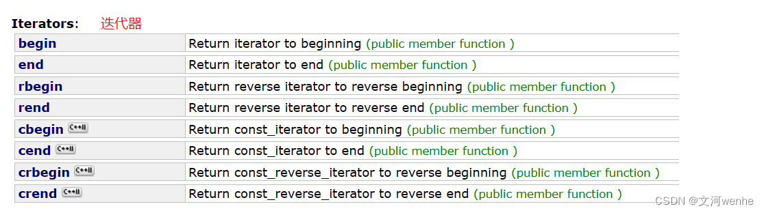iterator const_iterator reverse_iterator const_reverse_iterator