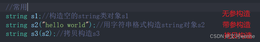 //operator + 写成了全局函数,为了保证ret3能够实现void test_string14(){string s1 = "hello";string s2 = "world";string ret1 = s1 + s2;//string + stringcout << ret1 << endl;string ret2 = s1 + "xxxxxx";//string + char*cout << ret2 << endl;string ret3 ="xxxxxx" + s1;//char* + stringcout << ret3 << endl;//字典序比较,比较ascii码值cout << (s1 < s2) << endl;}