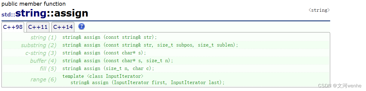 assign:赋值字符串,但赋值通常用operator=,运算符重载。