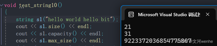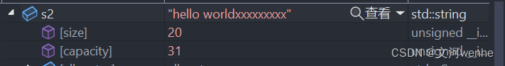 其次:还有一个size_t字段保存字符串长度,一个size_t字段保存从堆上开辟空间总的容量
