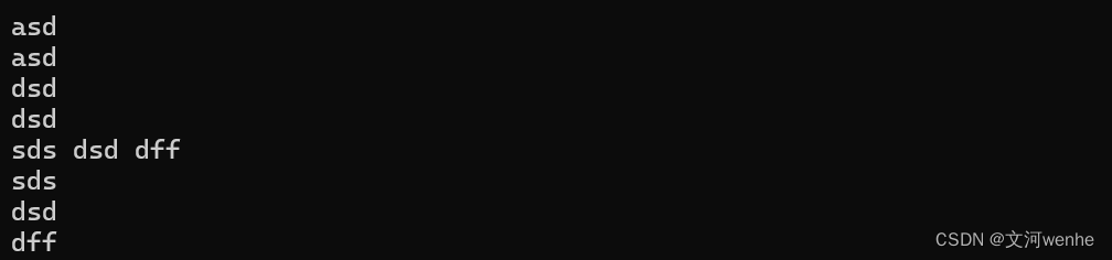 string str;//默认规定遇到空格或换行是多个值之间的分割while (cin >> str){cout << str << endl;}