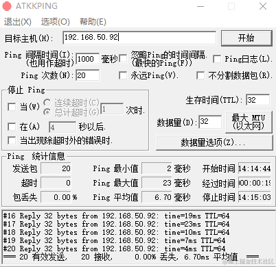 在通过测试app激活高性能模式后 同样的20个包平均延迟为6.7ms,最大值为23ms. 在长期测试中无线漫游丢包率为0%