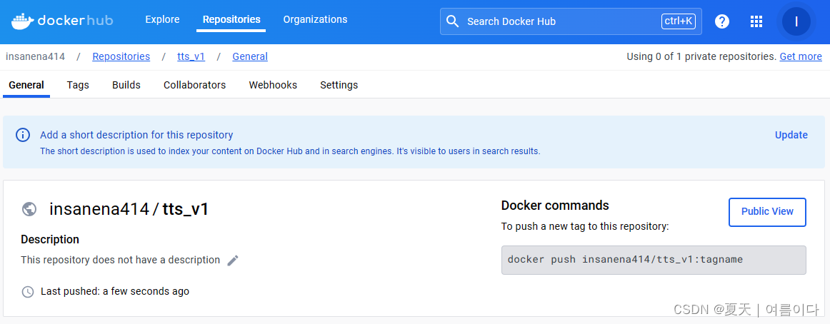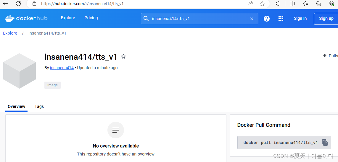 例如我的:docker tag tts_v1.0:latest insanena414/tts_v1