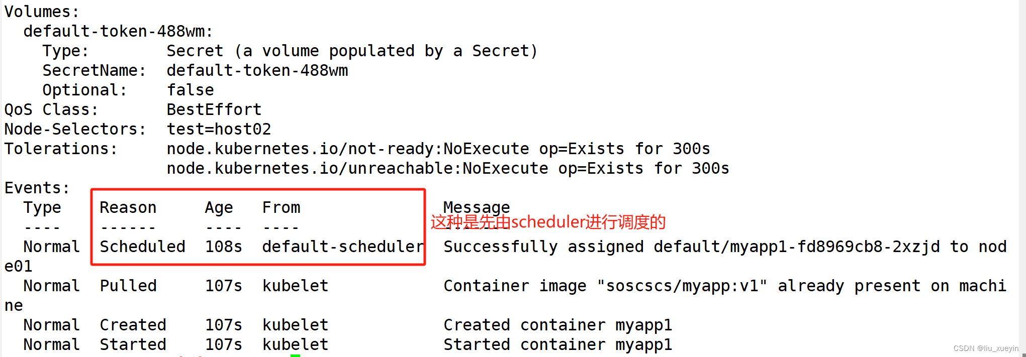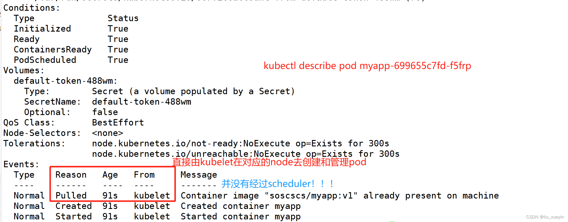 (9)由于 Scheduler 在监听(Watch)APIServer,并且它在系统中起到了“承上启下”的作用,“承上”是指它负责接收创建的 Pod 事件,为其安排 Node;“启下”是指安置工作完成后,Node 上的 kubelet 进程会接管后继工作,负责 Pod 生命周期中的“下半生”。 换句话说,Scheduler 的作用是将待调度的 Pod 按照调度算法和策略绑定到集群中 Node 上。