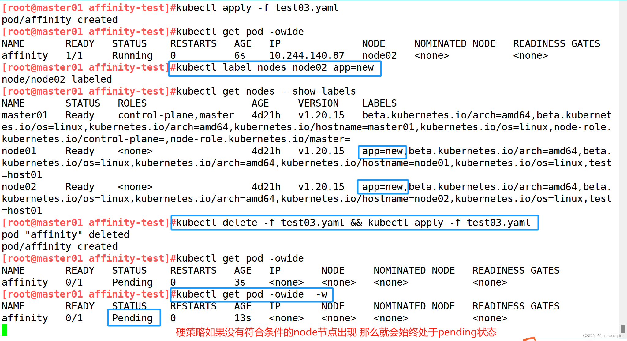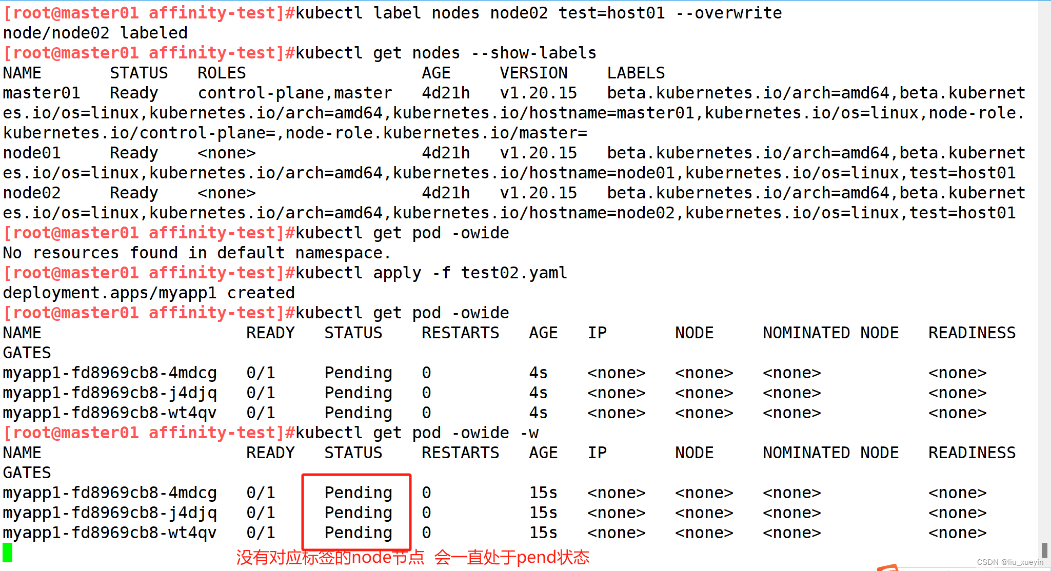 现在我没有这个test=host02标签的node节点,验证是否会都处于pending状态