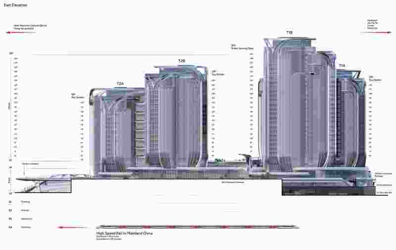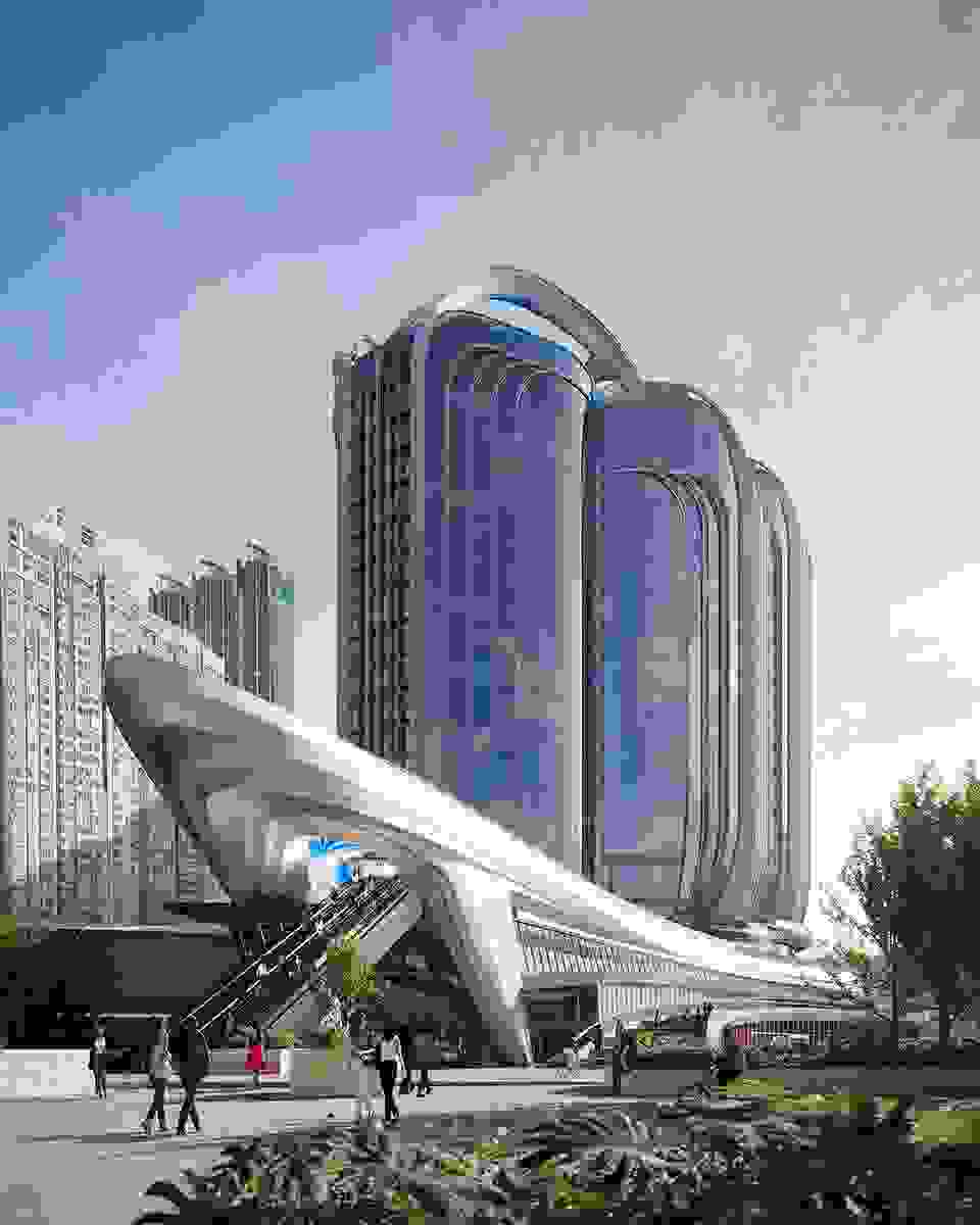 位于香港高铁西九龙总站上方、占地 320 万平方英尺(约 29.7 万 平方米)的新开发建筑项目已进入封顶阶段。该项目毗邻香港西九文化区,通过公共花园和景观广场网络连接周围成熟和新兴的社区。扎哈-哈迪德建筑事务所(ZHA)的设计与车站及屋顶公园融为一体,将最高标准的文化、办公和零售空间融为一体。