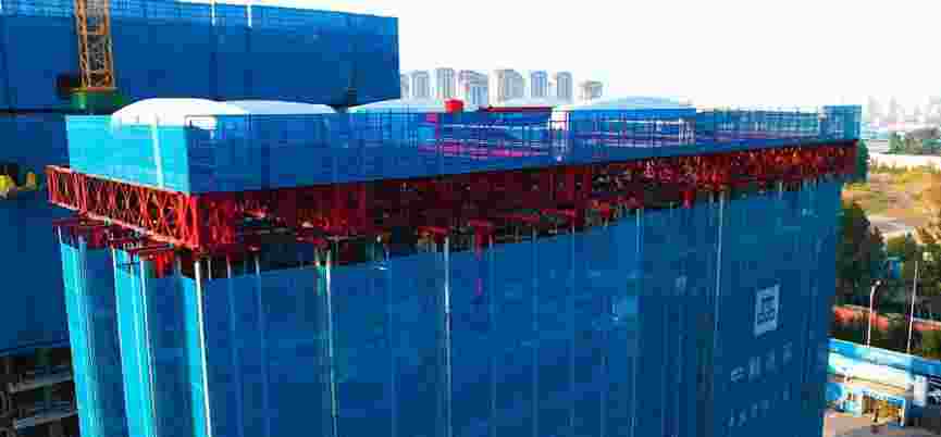 天蝉自爬升系统是根据仿生学,在“尺蠖”爬升系统的基础上迭代研发的产品。克服了传统爬升方式误差适应性差、支点无法同步受力、埋件倒运困难等行业难题。系统设有同步控制模块,保证爬升过程同步性。