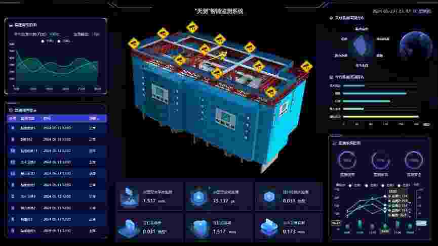 天测智能监测系统采用多源传感器,实时采集数据并进行信息融合,将数据上传云端,实现可视化实时监测与危险预警,确保施工过程的安全。