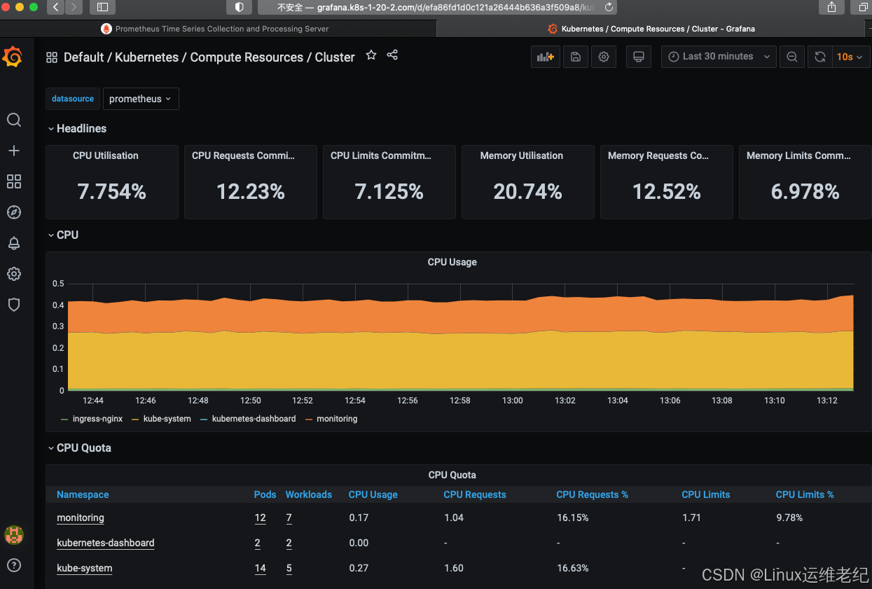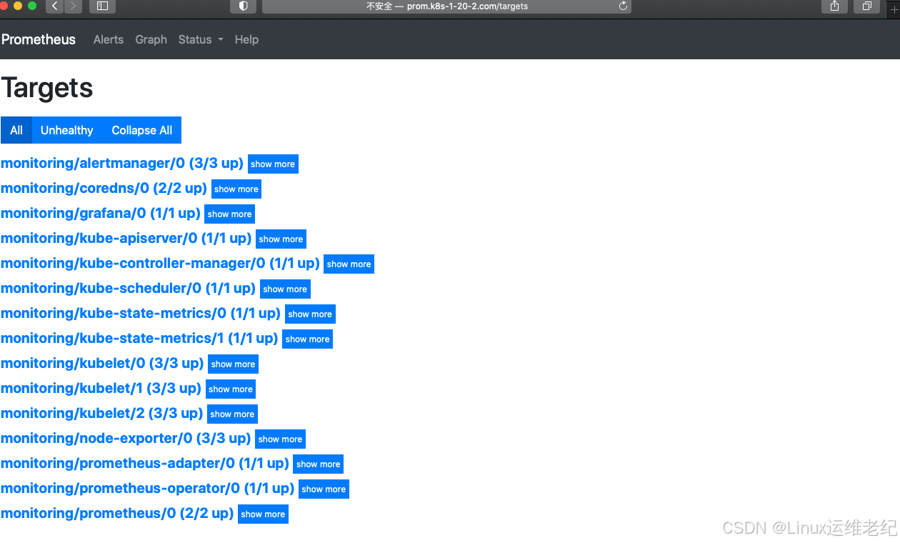 至此,通过kube-prometheus部署k8s监控已经基本完成了,后面再分享自定义监控和告警、告警通知、高可用、规模化部署等相关内容