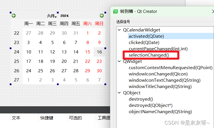 selectionChanged(const QDate&):当选中的日期发生改变时发出