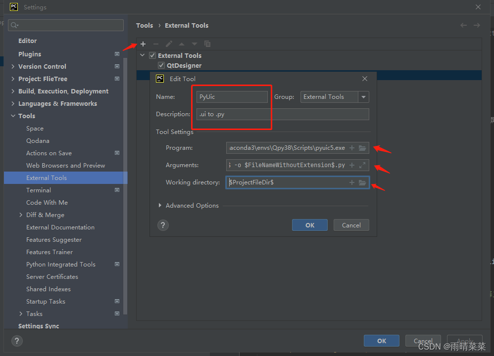 Windows PyCharm 安装配置QtDesigner。请确保已经安装PyQt。