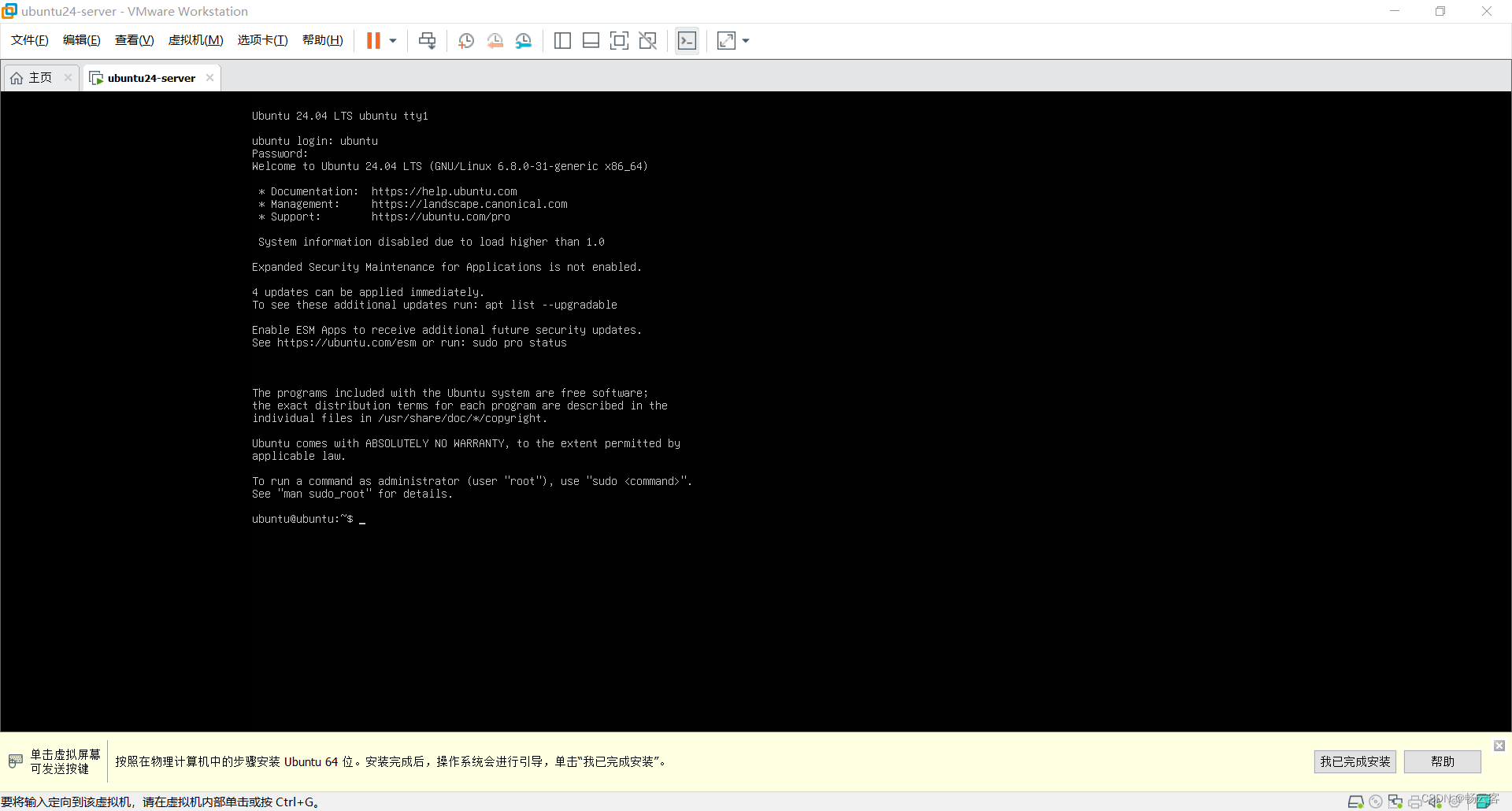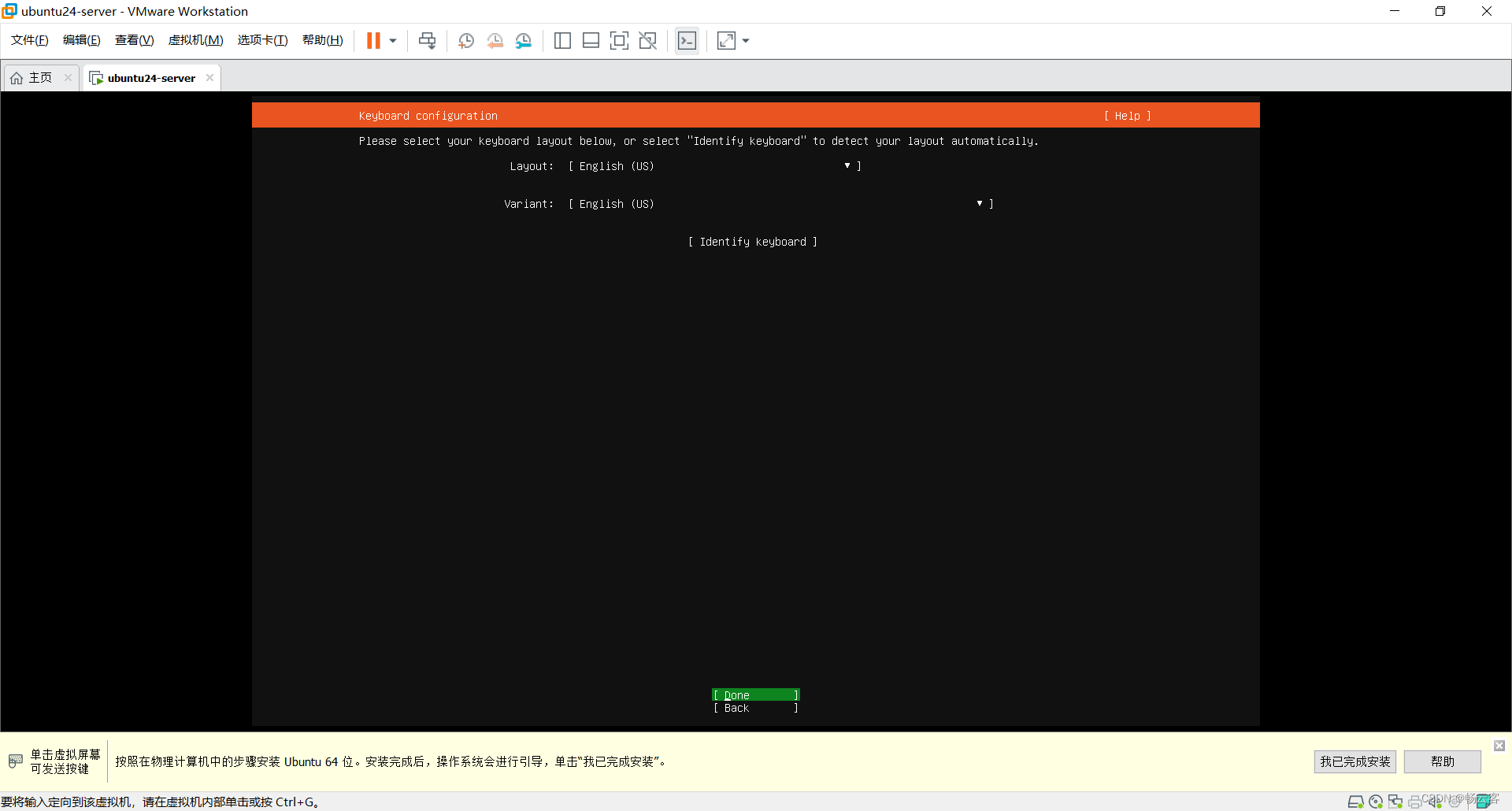 本文以VMware虚拟机为例演示Ubuntu24.04Server系统安装流程