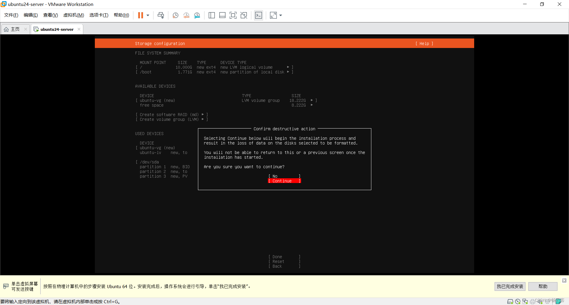 默认就是LVM格式的,不需要修改,直接按上下键调整到Done位置按回车即可