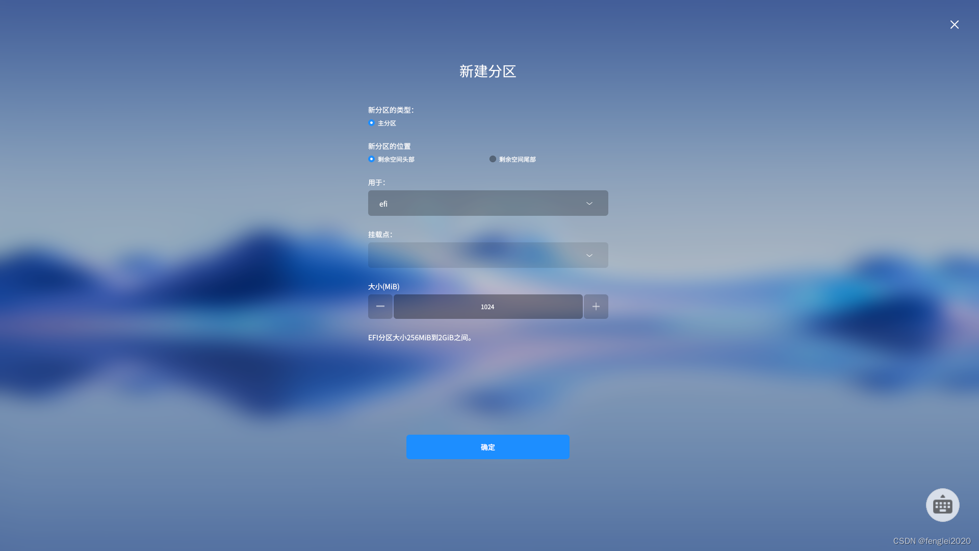 efi分区(用于“efi”、空间分配256MB~2GB)