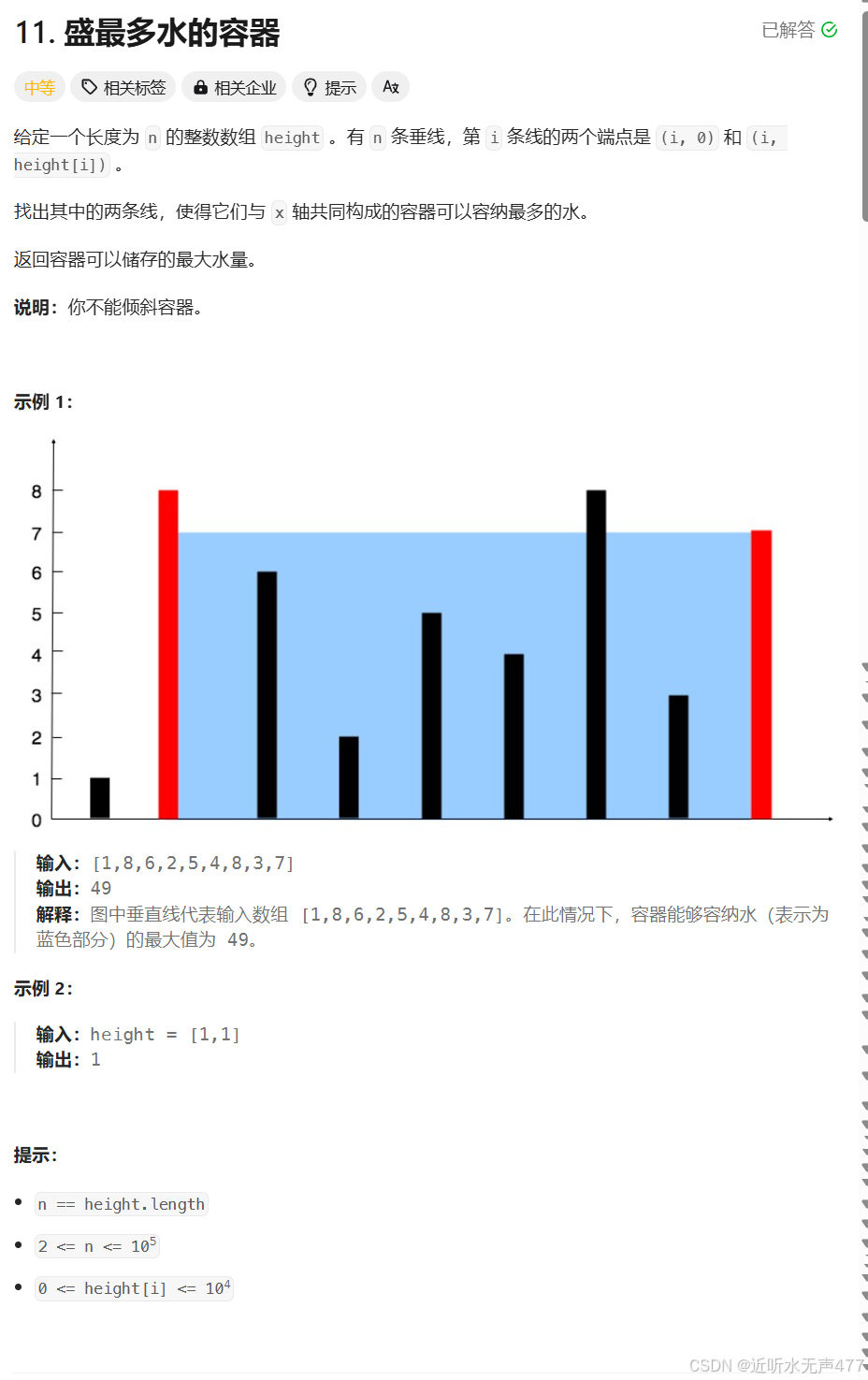题目链接:11. 盛最多水的容器 - 力扣(LeetCode)