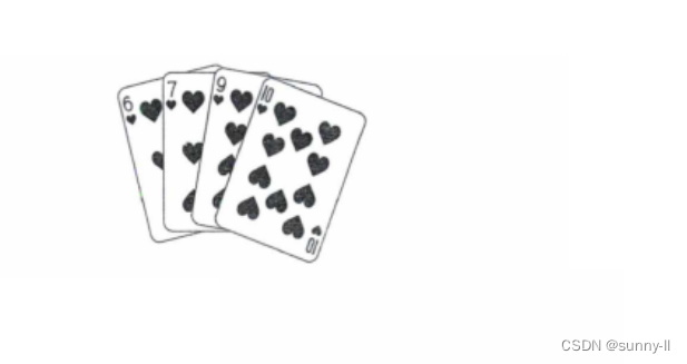 举个例子,比如我手中有红桃 6,7,9,10 这 4 张牌,已经处于升序排列: