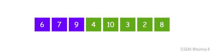首先对于单趟的逻辑,因为是要将一个数插入到一个有序区间中去,不妨设这个区间的最后一个位置为【end】,那这个待插入数据的位置就是【end + 1】,我们要将这个待插入的数据保存起来,因为在比较的过程中可能会造成数据的后移,那这个数就会被覆盖了接着将待插入的数据与有序区间的最后一个数进行比较,因为默认选择排升序,所以是要将小的数据放到前面,所以若是这个待插入数据比 a[end] 要小,那 a[end] 便进行一个后移,但是呢,随着数据的不断增大,有序区也会越来越大,此时待插入数据就不只是和有序区的最后一个数据做比较了,需要和前面的所有数进行一个比较,那么我们就要将这段逻辑放在一个循环里。这个循环什么时候结束呢?就是当这个【end < 0】为止若是在中途比较的过程中发现有比待插入数据还要小或者相等的数,就停止比较,跳出这个循环。因为随着有序区间中数的后移,end后一定会空出一个位置,此时呢执行a[end + 1] = tmp;就可以将这个待插入数据完整地放入有序区中并且使这个有序区依旧保持有序 根据上面的解析我们来用 图例 分析一下,单躺插入的过程,用例数组 a = [2,4,6,7,8,1] ,此时需要排一个升序。