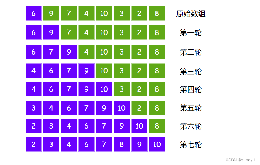 for (int i = 0; i < n - 1; ++i){int end = i;//单趟插入逻辑...} ③完整的图例和代码演示