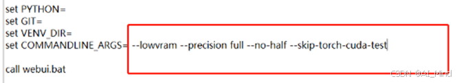 解决10:修改webui-user.bat文件,将原来的内容修改为如下内容: