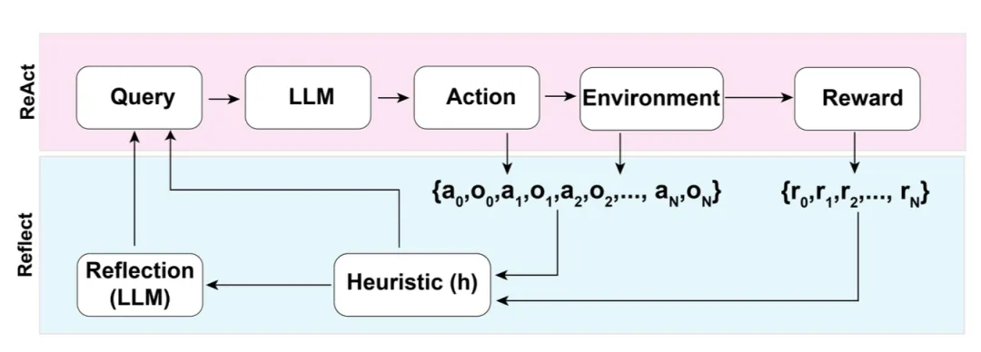 Reflexion:一个让 AI Agent 具备动态记忆和自我反思能力以提高推理能力的框架。沿用了 ReAct 中的设置,并提供简单的二进制奖励。每次行动后,AI Agent 都会计算一个启发式函数,并根据自我反思的结果决定是否重置环境以开始新的试验。这个启发式的函数可以判断是否当下的路径效率低下(耗时过长却没有成功)或包含幻觉(在环境中遇到一连串导致相同观察结果的相同行动),并在出现这两种情况下终止函数。