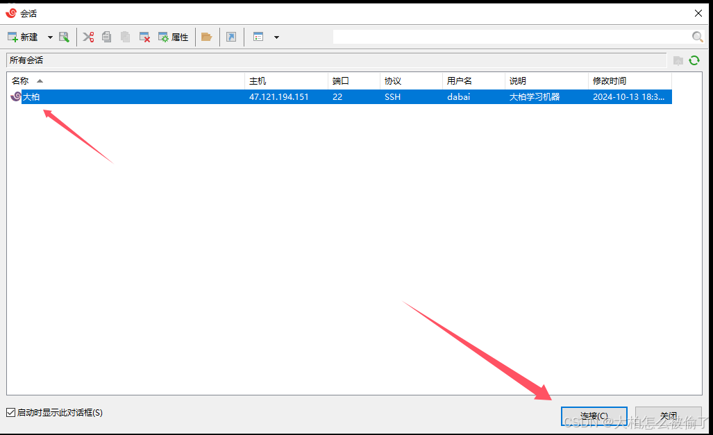 刚打开xshell的时候,会弹出会话窗口,这里就可以点击连接进入普通用户账户,而非输入指令。