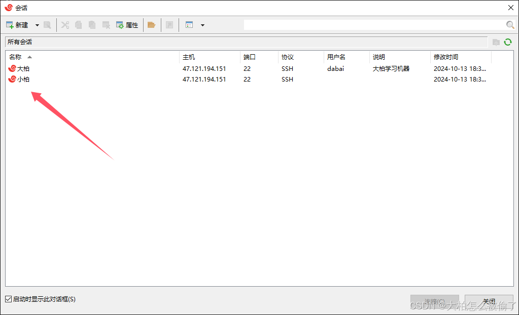 再次打开xshell的时候,就会在弹出的会话窗口中显示。