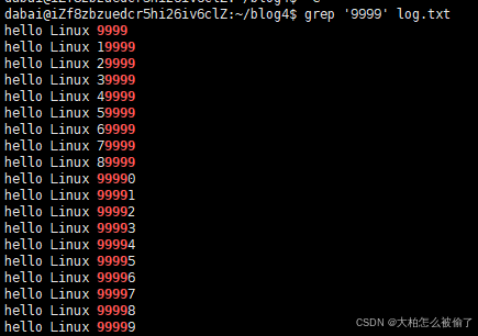 该指令可以将包含9999的行打印出来,也就是说grep是一个行文本过滤工具。