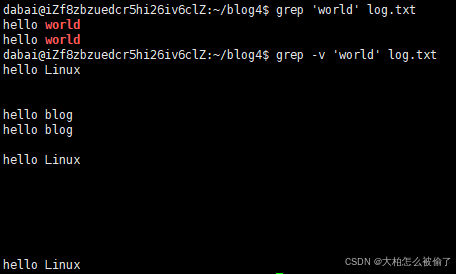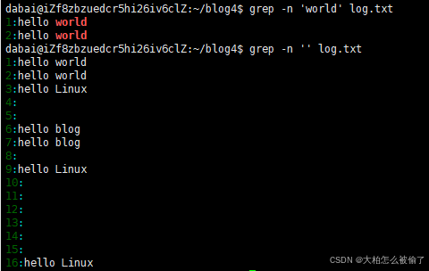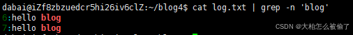 这句指令的意思就是,将log.txt里面的内容输出到管道里面,grep指令从管道里面过滤出来含有字符串blog的行。