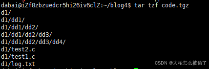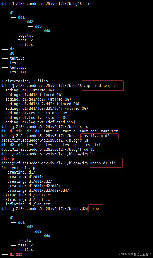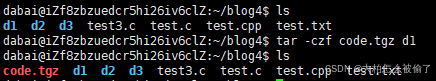 如上图所示,在目录d1下面有多个目录和文本文件,可以将这些文件打包压缩。