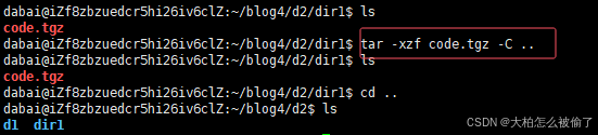 tar -xzf code.tgz -c ..带上-C选项之后可以将压缩包解压到指定目录下面。