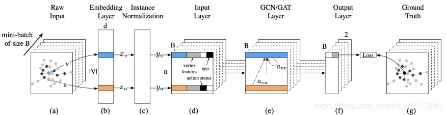 社会影响预测侧重于朋友之间行为的影响,尤其是在社交网络中。例如,如果一些社交网络上的朋友买了一件衣服,他/她会不会也买呢?以社交图作为输入,DeepInf为用户学习网络嵌入(一种潜在的社会表征)。结合下面(d)中手工制作的特征,对社会影响进行预测,比如v是否也会观看广告片段(步骤f)。在训练过程中,将预测结果与真值进行对比,学习这个网络嵌入。