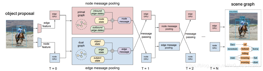 下面的模型使用GRUs生成场景图,并通过消息传递学习迭代改进其预测。
