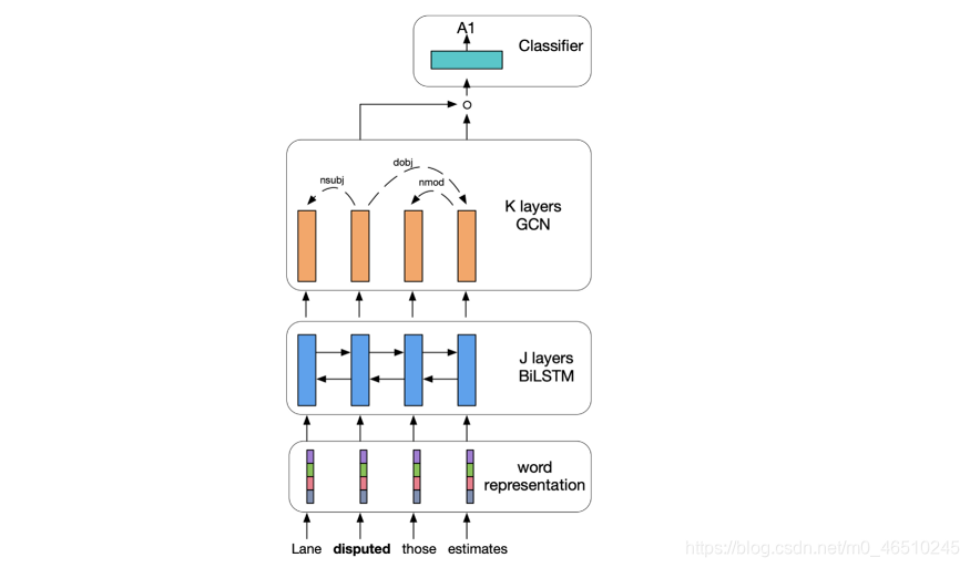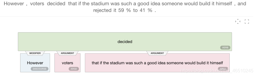 因此,给定一个谓词(“disputed”这个词),下面的模型会识别并标记它的所有参数。