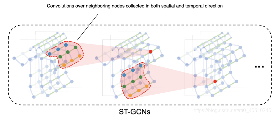 ST-GCN对其空间和时间邻居进行卷积,以估计输入视频的姿态。