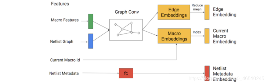 芯片网表图(节点类型和图邻接信息)和当前放置的节点通过GNN进行输入状态编码。