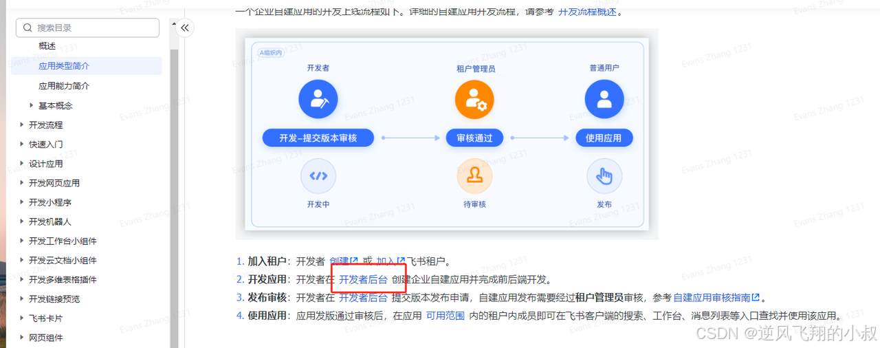 百度搜索:飞书开放平台,地址:https://open.feishu.cn/ ,通过 ” 开发文档 ”进入
