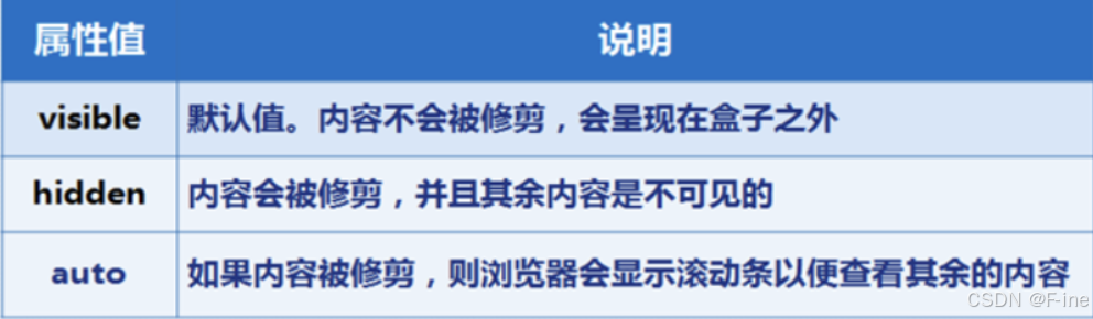 overflow属性:设置当对象的内容超过其指定的高度或宽度时如何处理内容。