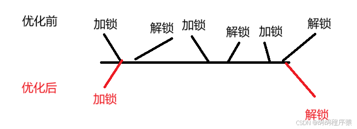 锁粗化:一个代码对细粒度的代码反复加锁解锁,就会将这个步骤优化为更粗粒度的加锁解锁。