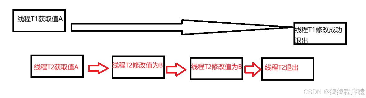 假如你去取钱有1000,取500,不小心按了两次取款,我们只想扣一次500,第一次按相当于T2,第二次按相当于T1,先执行T2读取操作修改为500,这时又正好有人给你汇款了500,内存中与寄存器中又相等了,T1扣款的操作也会执行成功。