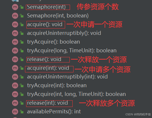 最主要的就是申请资源(P操作,调用acquire方法)释放资源(V操作,调用release方法)