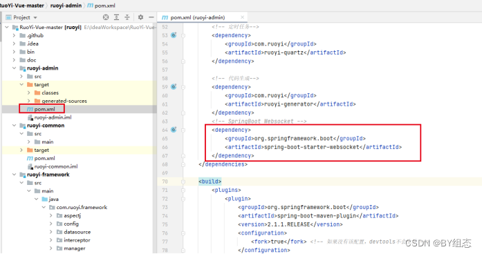 我们提供的websocket服务端代码如下,只有3个文件,使用的是springboot自带的jar。