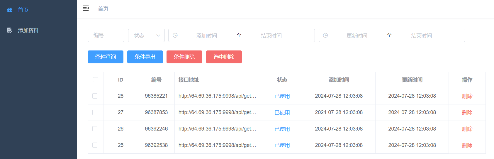 提供删除接口(多条件)