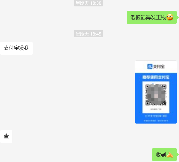 经测试没问题之后,找老板要钱吧,因为是熟人,所以提前报了价,没有先付钱,如果大家在接项目的时候,最好能有个定金意识,避免干活拿不到钱的情况,一般采用付一半或者4-4-2的比例。