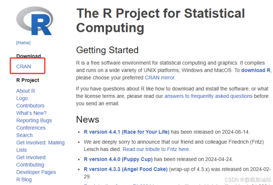 1、访问网址 r-project.org ,点击“CRAN”,访问官方镜像网站