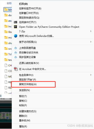 1、根据之前所选的安装路径,打开R语言的文件夹,“shift+右键” bin文件夹,“复制文件地址”