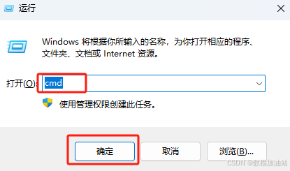 5、快捷键“win+R”,在弹出窗口输入“cmd”,点击确定