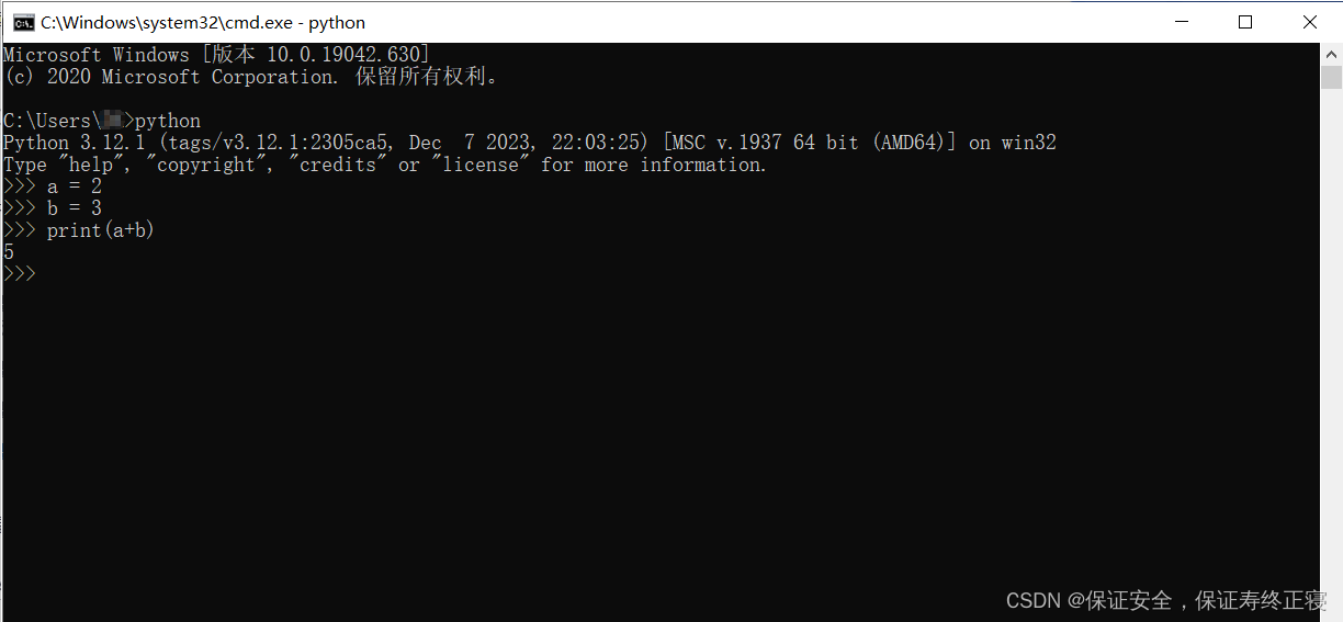 很显然2+3=5,诶没问题,那就说明Python安装成功了。